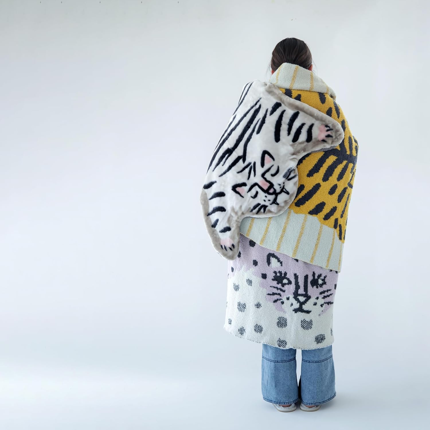 This is a die-cut blanket. Meyer blanket on front and sheep boa on the back. The glossy and smooth texture is pleasant to the touch, and you will want to feel it forever. Large enough to be worn as a knee. It can also be used as a sofa cover.